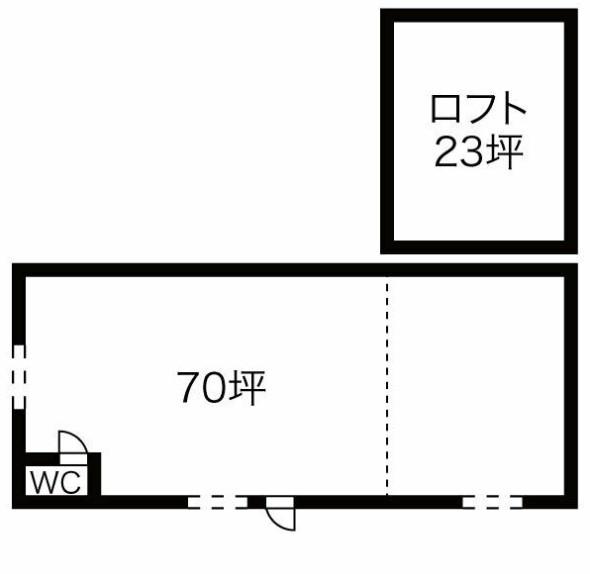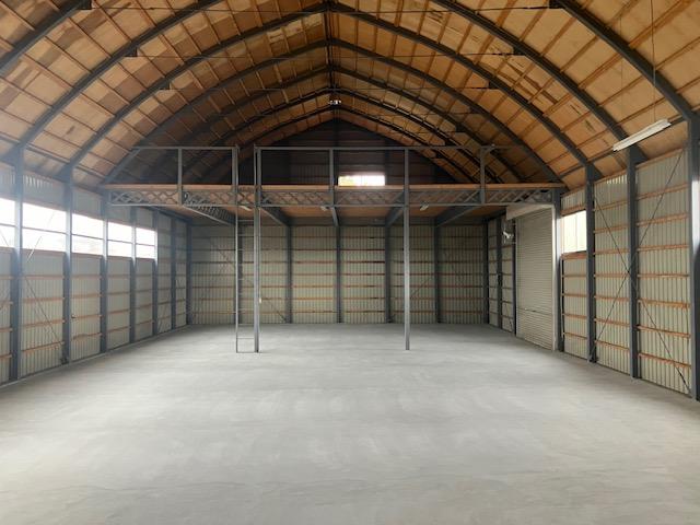 【東米里貸倉庫】倉庫建坪 70坪、内部に23坪の2階建ての区画あります。簡易水洗のトイレ(汲み取り式)水道使用料4,400円、散水栓あります。倉庫前面駐車可能で側面は出入りのみの設定です。土地代として5万円月額です。