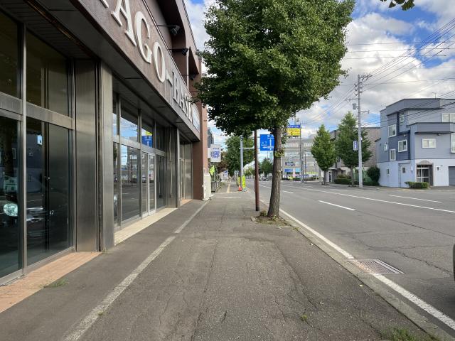 【白石区/北郷エリア】北13条・北郷通沿いの1階の路面店舗です。原状は車両の展示場として使用しています。 原状渡しになります。屋外に駐車場2台使用可能です。前面ガラス張りで使用用途はお問い合わせください。店舗・事務所・倉庫使用 お問い合わせください。